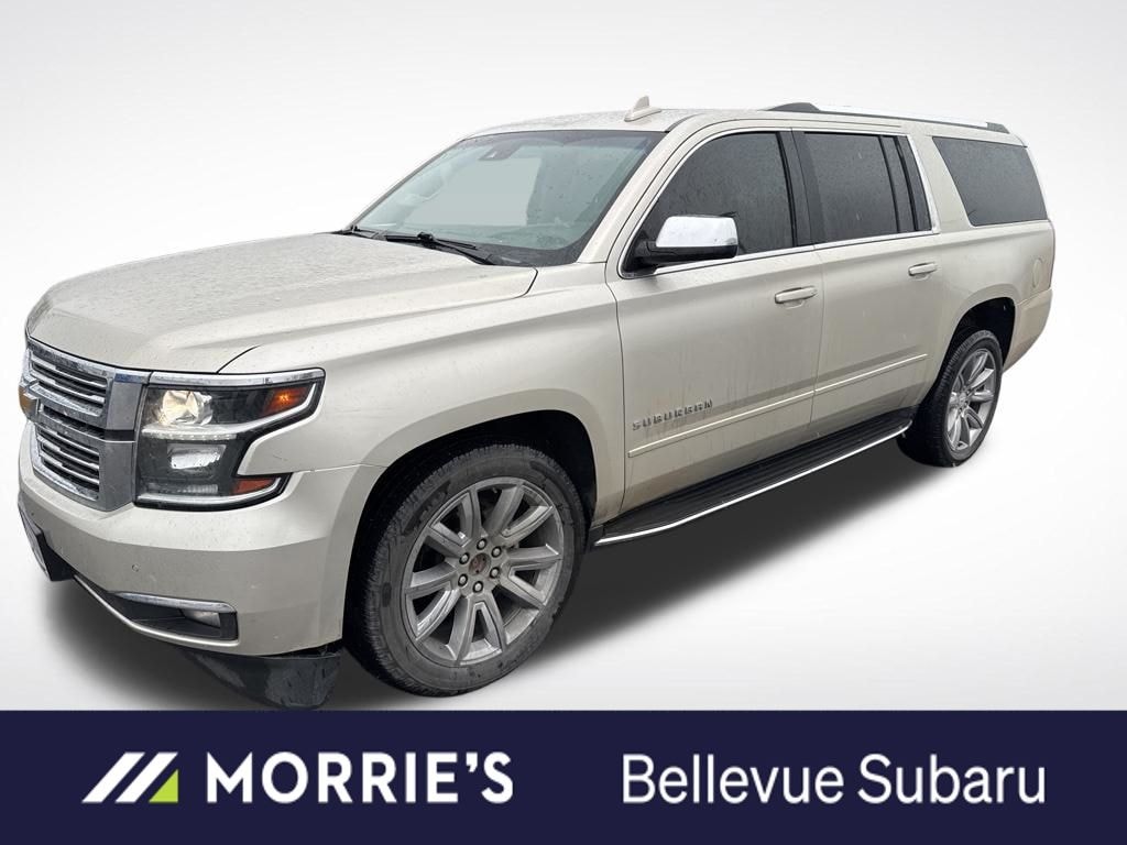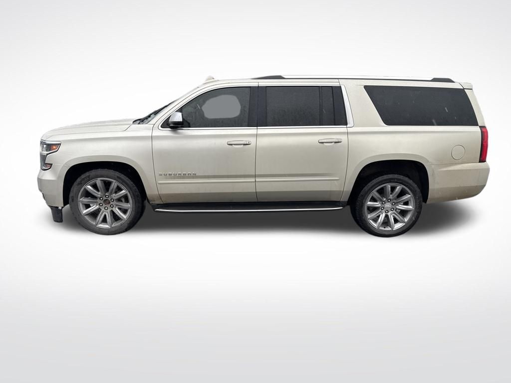 Champagne Silver Metallic 2017 Chevrolet Suburban Premier 4WD 6-Speed Automatic Electronic with Overdrive EcoTec3 5.3L V8 Flex Fuel Suburban Premier, EcoTec3 5.3L V8 Flex Fuel, 4WD, Champagne Silver Metallic, 1st & 2nd Row Color-Keyed Carpeted Floor Mats, 2-Speed Active Electronic AutoTrac Transfer Case, 3.42 Rear Axle Ratio, 3rd Row 60/40 Power Fold Split-Bench, 4-Wheel Antilock Disc Brakes, Auto-Dimming Inside Rear-View Mirror, Black Assist Steps, Color-Keyed Carpeting Floor Covering, Driver Inboard & Front Passenger Airbags, Electronic Cruise Control w/Set & Resume Speed, Enhanced Driver Alert Package, Enhanced Driver Information Center, Floor Console w/Storage Area, Fog Lamps, Front & Rear Parking Assist, Hands Free Power Liftgate, Heated 2nd Row Outboard Seats, Heated Leather Wrapped Steering Wheel, Integrated Trailer Brake Controller, License Plate Front Mounting Package, Magnetic Ride Control Suspension Package, Max Trailering Package, Memory Settings, OnStar Basic Plan For 5 Years, Passive Entry System, Power Folding & Adjustable Heated Outside Mirrors, Power Release 2nd Row Bucket Seats, Power Tilt & Telescoping Steering Column, Power Tilt-Sliding Sunroof w/Express-Open/Close, Power-Adjustable Accelerator & Brake Pedals, Preferred Equipment Group 1LZ, Push Button Keyless Start, Rear Cross-Traffic Alert Sensor Indicator, Rear Seat Entertainment System, Remote Vehicle Start, Roof-Mounted Luggage Rack Side Rails, Side Blind Zone Alert w/Lane Change Alert, SiriusXM Satellite Radio, Sun, Entertainment & Destinations Package, Universal Home Remote, Wheels: 22" x 9" Ultra Bright Machined Aluminum, Wireless Charging.