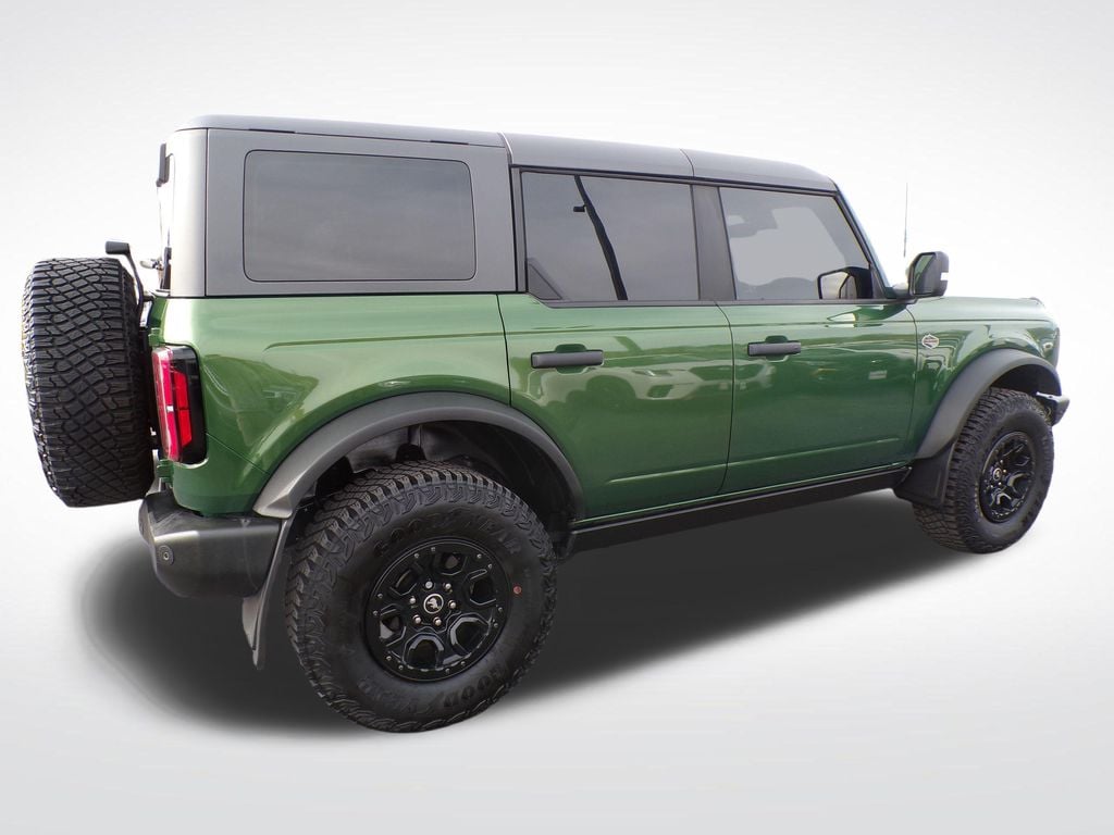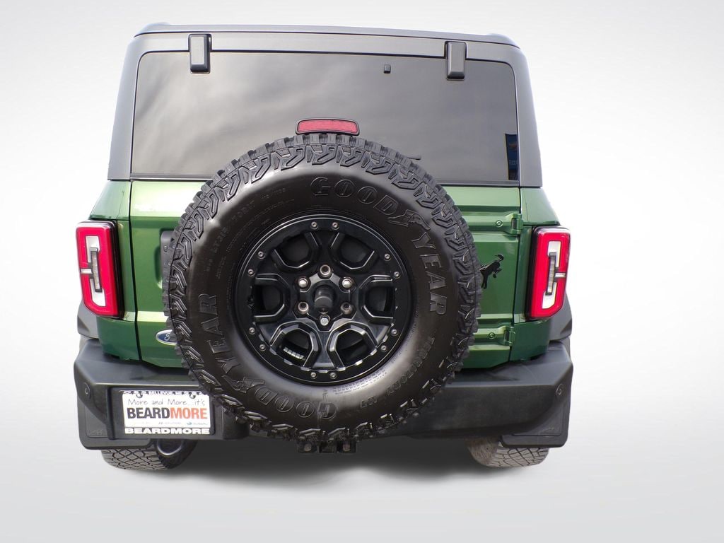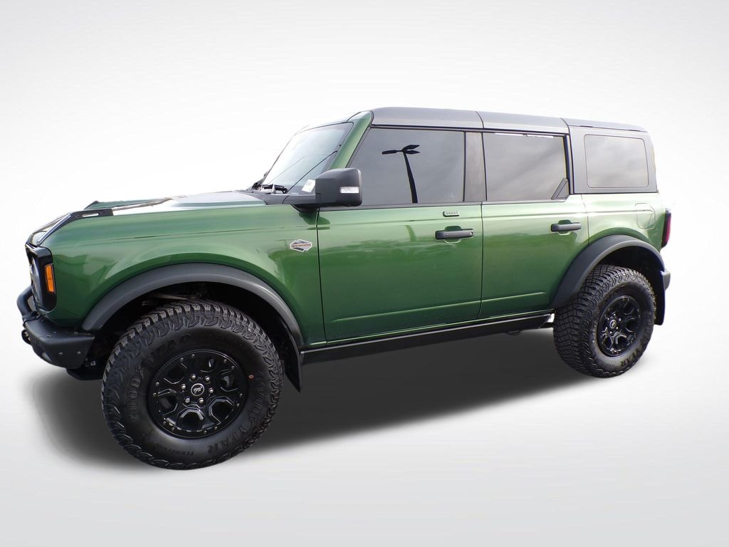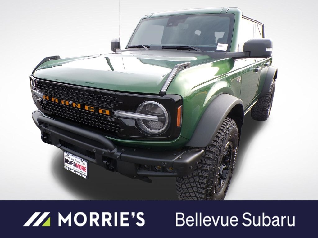 Eruption Green Metallic 2022 Ford Bronco Wildtrak 4WD 10-Speed Automatic 2.7L EcoBoost V6 Bronco Wildtrak, 4WD, Eruption Green Metallic, Medium Sandstone w/Black Onyx w/Heated Leather-Trimmed/Vinyl Bucket Seats, 12" LCD Capacitive Touchscreen w/Swipe Capability, 2 Smart Charging USB Ports In Dashboard, 360-Degree Camera, Adaptive Cruise Control, Additional Sound Deadening, Brush Guard, Connected Built-In Navigation, Equipment Group 354A Lux Package, Evasive Steering Assist, Exterior Parking Camera Rear, Ford Performance Heavy-Duty Modular Front Bumper, Front Parking Sensors, Heated door mirrors, Heated Steering Wheel, Information on Demand Panel, Radio: B&O Sound System by Bang & Olufsen, Sideview Mirrors, Universal Garage Door Opener, Wheels: 17" Black High Gloss-Painted Aluminum, Wireless Charging Pad.