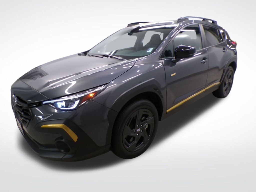 Magnetite Gray Metallic 2024 Subaru Crosstrek Sport AWD Lineartronic CVT 2.5L 4-Cylinder DOHC 16V Crosstrek Sport, AWD, Magnetite Gray Metallic, 10-Way Power Driver's Seat, Auto-Dimming Exterior Mirror w/Approach Light, Auto-Dimming Mirror w/Compass & HomeLink, Blind Spot Detection w/Rear Cross-Traffic Alert, BSD/RCTA & Power Driver Seat & Power Moonroof, Crosstrek Mirror Package, Power Moonroof, Wheels: 18" x 7.0J Dark Gray Aluminum Alloy.